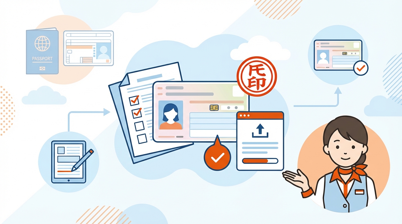 前述の「必要書類」の項目を参考に、必要なものをすべて揃えます。特に、眼鏡やコンタクトレンズ、申請用の写真など、忘れやすいものもありますので注意が必要です。